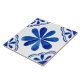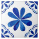 A vibrant blue floral, and white, Mediterranean tile design painted in watercolor, to be used to complement decor inspired by Portugal, Spain, Italy, and beyond.