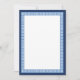 An elegant wedding invitation featuring a Greek key frame and a Greek column in cool Aegean / Mediterranean colours.
