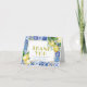 This elegant bridal shower thank you card features a white background with blue Mediterranean tiles, flowers and lemons/citrus in watercolor. Personalise it for your needs. You can find matching products at my store.