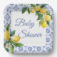 Mediterranean Blue Tile Lemon Baby Shower Paper Plate