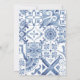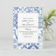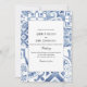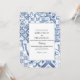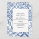 This wedding invitation is inspired by the blue and white tiles spotted around Mediterranean cities throughout Spain, Italy, and Greece.