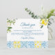 Mediterranean Blue Tiles and Lemons Bridal Shower Thank You Card
