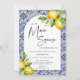Mediterranean Blue Tiles Lemons 70th Birthday Invitation