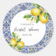 Mediterranean Blue Tiles Lemons Bridal Shower Classic Round Sticker