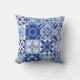 Mediterranean Blue White Tile Pattern Watercolor Cushion