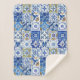 Mediterranean Blue, White & Yellow Floral Pattern Sherpa Blanket