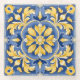 Mediterranean Botanical Pattern - Blue and Yellow Glass Coaster