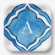 Cobalt Blue Tile Monogram Paper Plate. Large Monogram.