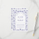 Simple and minimalist modern Mediterranean floral line art in navy blue on a white background. Back features a matching flower pattern. Original art by Nic Squirrell. Change the text to personalise.