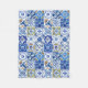 Mediterranean Floral Blue, White & Yellow Pattern Fleece Blanket
