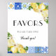 Mediterranean Italian Blue Tile Lemons Favours Sign