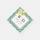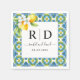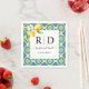 Mediterranean blue and yellow tiles and lemon branch with flowers wedding paper napkin. This wedding paper napkin design bursts with Mediterranean charm, showcasing a vibrant blue and yellow tile pattern that evokes the sun-drenched coastlines of Italy. Sprigs of blooming lemon branches, gracefully placed in the upper left corner, add a touch of classic Italian elegance. The design is a delightful blend of sophistication and playfulness, ideal for a celebration that embraces the warmth and beauty of an Italian summer. All the essential details are presented clearly within a square frame, ensuring readability and stylish presentation.