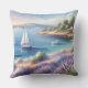 Mediterranean Lavender Coast with Sailboats Cushion