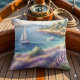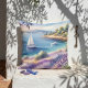 This vibrant artwork captures a dreamy Mediterranean coastal scene, where lush lavender fields gently slope down to meet crystal-blue waters dotted with elegant sailboats. The painting blends the charm of a French Riviera village—complete with stone cottages and a quaint church tower—with the breezy calm of a summer seascape. Gulls glide over the tranquil ocean, and the golden light of dusk casts a warm glow across the pine-fringed cliffs. The soft watercolor style adds an ethereal quality, enhancing the peaceful and romantic ambiance of the composition. Ideal for evoking feelings of escape, serenity, and the timeless beauty of Provence. AI generated artwork.