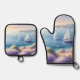 Mediterranean Lavender Coast with Sailboats Oven Mitt & Pot Holder Set