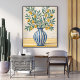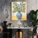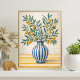 Bring a touch of Mediterranean charm to your space with this elegant hand-drawn botanical illustration. This artwork features delicate lemon branches with lush green leaves arranged in a classic blue striped ceramic vase, creating a warm and rustic still life composition.