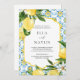 Invite your guests to a sun-soaked celebration with this Mediterranean lemon wedding invitation. Featuring hand-painted watercolor lemons, lush green leaves, and a vibrant blue-and-white Italian tile pattern, this design is inspired by the charm of the Amalfi Coast and Southern Italy.