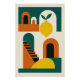 A bright, fresh and architectural composition that emphasizes lemon. This poster evokes the scents of the South, the ochre buildings, and the eternal summer of the Amalfi Coast.
