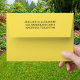 Complete your wedding invitations with this Mediterranean Lemon Yellow Wedding Envelope, designed to bring a refined and polished touch to an elegant-themed celebration. Featuring a yellow colour that feels timeless and sophisticated, this envelope elevates your stationery from the very first glance. Personalise the To and From address to create a seamless, custom look that saves time while adding a thoughtful, professional finish. Perfect for formal, semi-formal, or upscale wedding, this personalised envelope makes mailing your invitations effortless and ensures a beautiful first impression for your guests.