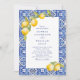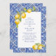Mediterranean Lemons Blue Tiles Wedding Invitation