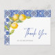 Mediterranean Lemons Blue Tiles Wedding Thank You Postcard