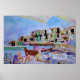Mediterranean Moment Print. A waterfront scene showing boats and people dining in the foreground. By henrytheartist.