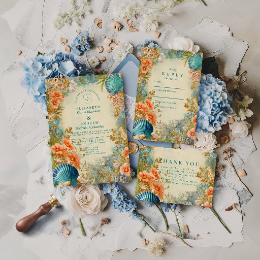 Mediterranean Seashell Elegance Wedding Invitation