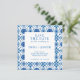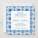 Matching elegant Wedding "Save the Date" Invitation for the "Mediterranean summer modern blue mosaic Wedding Stationary Collection". Text is fully customisable.