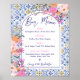 Bring a stylish touch to your bridal shower with this Boho Floral & Blue Tile Bar Menu Sign. Featuring delicate hand-painted flowers and a Mediterranean-inspired blue and yellow tile border, this sign beautifully lists wine, spirits, beer, and non-alcoholic options. It’s the perfect addition to your drink station and makes a chic statement that guests will love. Ideal for bridal showers, engagement parties, or bachelorette celebrations.