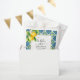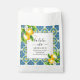 La Dolce Vita Mediterranean blue and yellow tiles Thank You bachelorette weekend lemonade favour bags. Celebrate a special bachelorette weekend with these charming "La Dolce Vita" themed lemonade favour bags. Designed to evoke the sun-drenched beauty of the Mediterranean, each bag showcases a delightful border of blue and yellow tiles, reminiscent of Mediterranean patterns. Adding a touch of natural elegance, delicate lemon branches adorned with vibrant blossoms grace the upper left and bottom right corners, perfectly capturing the essence of a refreshing summer gathering. These favour bags offer a beautiful and memorable way to thank your guests for sharing in the festivities.