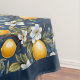 Mediterranean vibrant yellow lemons navy blue tablecloth