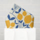 Add Mediterranean fruit vibes to your crafts and party supplies with this tissue paper featuring botanical lemons arranged on cobalt blue scallop shapes