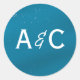 Medium Blue Sky Snowy Monogram Wedding Classic Round Sticker