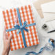 A wrapping paper designed with a bright orange and white gingham pattern in medium size.