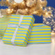 A wrapping paper designed with a light blue and yellow striped pattern in medium size. You can change the yellow for a different colour.