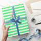 A wrapping paper designed with a light green and white striped pattern in medium size. You can change the light green for a different colour.