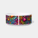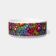 This is a heavy, durable bowl decorated with Tibbies of many colors, the perfect size for hungry/thirsty Tibs. The design is interesting and printing clear.