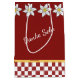 Pretty red medium size gift bag with graphics of white edelweiss flowers bordering the top of the bag, and a red and white chequered pattern, along the bottom with a yellow band accent. White text reads Danke Sehr, German for thank you, on the front of the bag. Personalise the text to read what you want. Matching tissue paper is available.