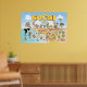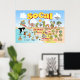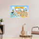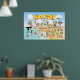 Bright and colourful scene offers a spectacular view of Southern California - wacky characters frolic on the beach and desert of SoCal showcasing Los Angeles, Santa Barbara, San Diego, Riverside, Palm Springs, Anaheim, Anza Borrego and Joshua Tree parks as well as the border cities of Tijuana, Tecate and Mexicali. This charming scene has it all – a surfer hangs ten while a mermaid lounges on a rock, a killer whale leaps out of the water, zoo animals greet the tourists, a muscular beach couple both flex to impress as a T-Rex roars a challenge and a tank rumbles into position and much more…