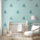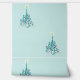 This beautiful wallpaper with an original digital painting by Leslie Sigal Javorek of a swirly turquoise Christmas tree w/ violet ornaments on a Trompe L'oeil (trick of the eye) background illusion of fine bone china & greater depth. The large scale design is great for your home or business.