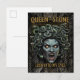 Send a message with mythic power using this Medusa “Queen of Stone” postcard. Featuring the legendary gorgon with her serpent hair, glowing eyes, and cracked stone skin, framed in bold gold lettering.
