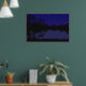 Mooie grafische poster van een klein meer of ven in het avondlight.