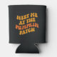 This design features the phrase "Meet Me at the Pumpkin Patch" displayed in a bold, retro-inspired font with a playful, wavy appearance. The text is arranged in a staggered, diagonal layout, adding a dynamic and lively feel to the design. The colour scheme includes warm autumnal hues, with the top words in a golden yellow transitioning to a rich orange towards the bottom, creating a gradient effect that enhances the festive fall theme.