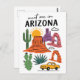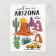 Venture into the captivating landscapes with this charming 'Meet Me in Arizona' postcard, featuring a delightful collection of Arizona icons in a fun doodle style! This whimsical illustrated postcard captures the state's iconic desert beauty, majestic rock formations, and sunny skies. It showcases everything from towering saguaro cacti and prickly pear plants to stunning red rock landscapes and a classic road trip car. The playful illustrations and clear lettering make this postcard a unique and memorable tribute to Arizona, USA