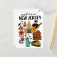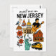 Plan your next visit to the Garden State with this charming 'Meet Me in New Jersey' postcard, featuring a delightful collection of New Jersey icons in a fun doodle style! This whimsical illustrated postcard captures the unique blend of coastal charm, urban landmarks, and cultural influences. It showcases everything from a classic seagull and sailboat, to the New Jersey State Capitol, an electric guitar (a nod to the state's rich music scene), and the symbolic presence of the Statue of Liberty. The playful illustrations and clear lettering make this postcard a unique and memorable tribute to New Jersey, USA.