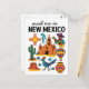 Embark on a Southwestern adventure with this charming 'Meet Me in New Mexico' postcard, featuring a delightful collection of New Mexico icons in a fun doodle style! This whimsical illustrated postcard captures the unique blend of Native American and Spanish heritage, desert landscapes, and vibrant traditions. It showcases everything from the sacred Zia sun symbol and a traditional adobe mission, to a graceful roadrunner, a colourful hot air balloon, and a classic cactus. The playful illustrations and clear lettering make this postcard a unique and memorable tribute to New Mexico, USA.