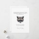 The front showcases our mischievous racoon, holding a bag of snacks and eyeing the neighbourhood welcome sign with a playful glint. It sets the tone for a warm and humourous welcome to your new neighbours.