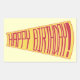Happy Birthday is spelled out in red on a yellow mega phone, is printed on yellow stickers. The background colour of light yellow can be customised.
