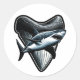 This commanding logo captures the essence of the prehistoric Megalodon, framed within the iconic silhouette of a shark tooth. The Megalodon is illustrated with striking detail in a palette of deep blues and contrasting whites, emphasizing its formidable size and power. Its jaws are open in a show of might, revealing an impressive array of teeth. The silhouette of the tooth provides a bold outline that enhances the overall impact of the design, symbolising both the ancient strength and the enduring legacy of this legendary creature. The use of a deep black backdrop allows the metallic accents on the Megalodon's body to stand out, creating a sleek and contemporary emblem that conveys dominance, resilience, and a commanding presence.