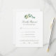 This simple, elegant meal choice wedding RSVP card features stylish forest green calligraphy script and serif typography and is embellished on the front and back with a simple branch of watercolor greenery and one, white rose. Easily customise your desired response date, accept and decline wording, and meal selections or entree choices. Designed to coordinate with our traditional Megan wedding collection. Be sure to browse the other products in this collection to create a coordinated, classic look for your special day. If you need assistance customising your items, please contact me at admin@albamarie.com. I'd happy to help!